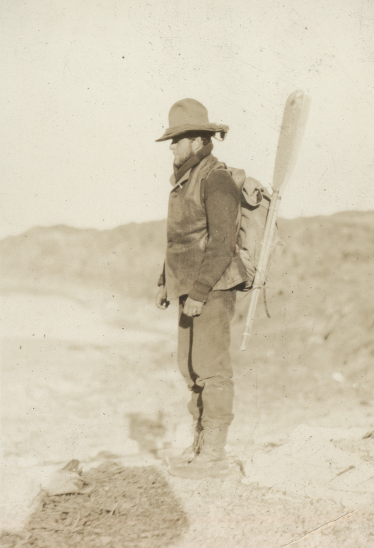 1927 Monroe Grey Barnard with oars and backpack on Baffin Island