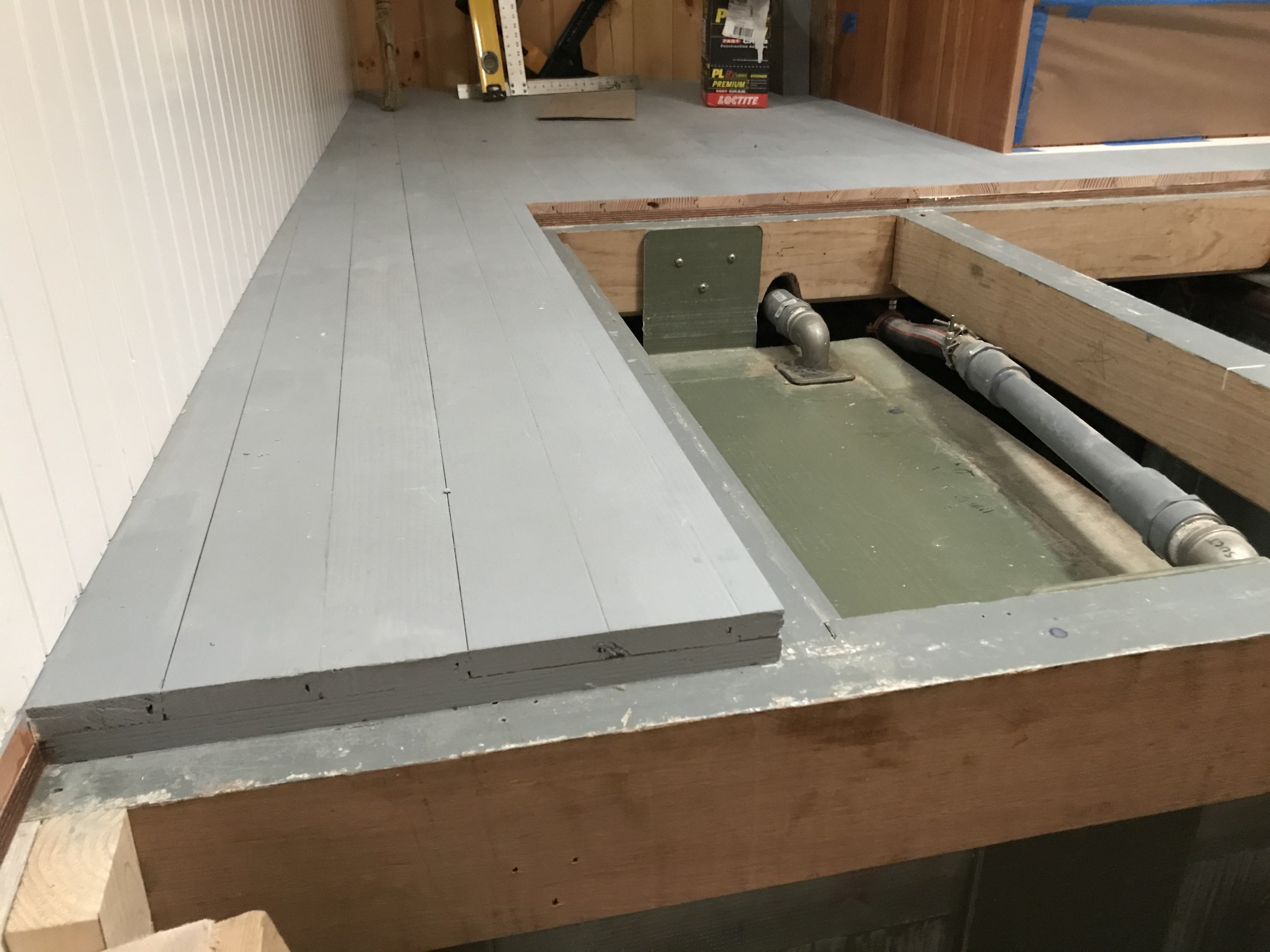 Another step closer to finished interior spaces. The Douglas fir finished sole is being installed in the Aft Cabin this week. The crew has been careful to build the panels in a manner that will allow for maximum access into the bilges.