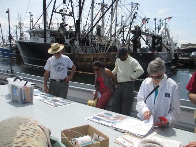 Mystic Seaport's whaleboats were offering rowing tours during the Homecoming providing a waterside view of the Morgan and demonstrating rowing skills "threading the needle between Ernestina and the fishing boats.