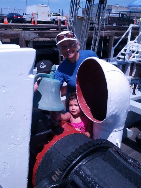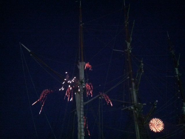 The New Bedford Homecoming of the Charles W. Morgan was the event of the summer for the city and for Ernestina Morrissey. With the help of many wonderful volunteers, DCR staff and the Schooner Ernestina Commission hosted over 1600 people on the ship. The weather was wonderful except for a short visit by Hurricane Arthur which cancelled July 4 events. From the first weekend until the closing fireworks it was a great event! Thank you to everyone who made it possible to tell Ernestina Morrissey‘s many stories to new friends from all over!