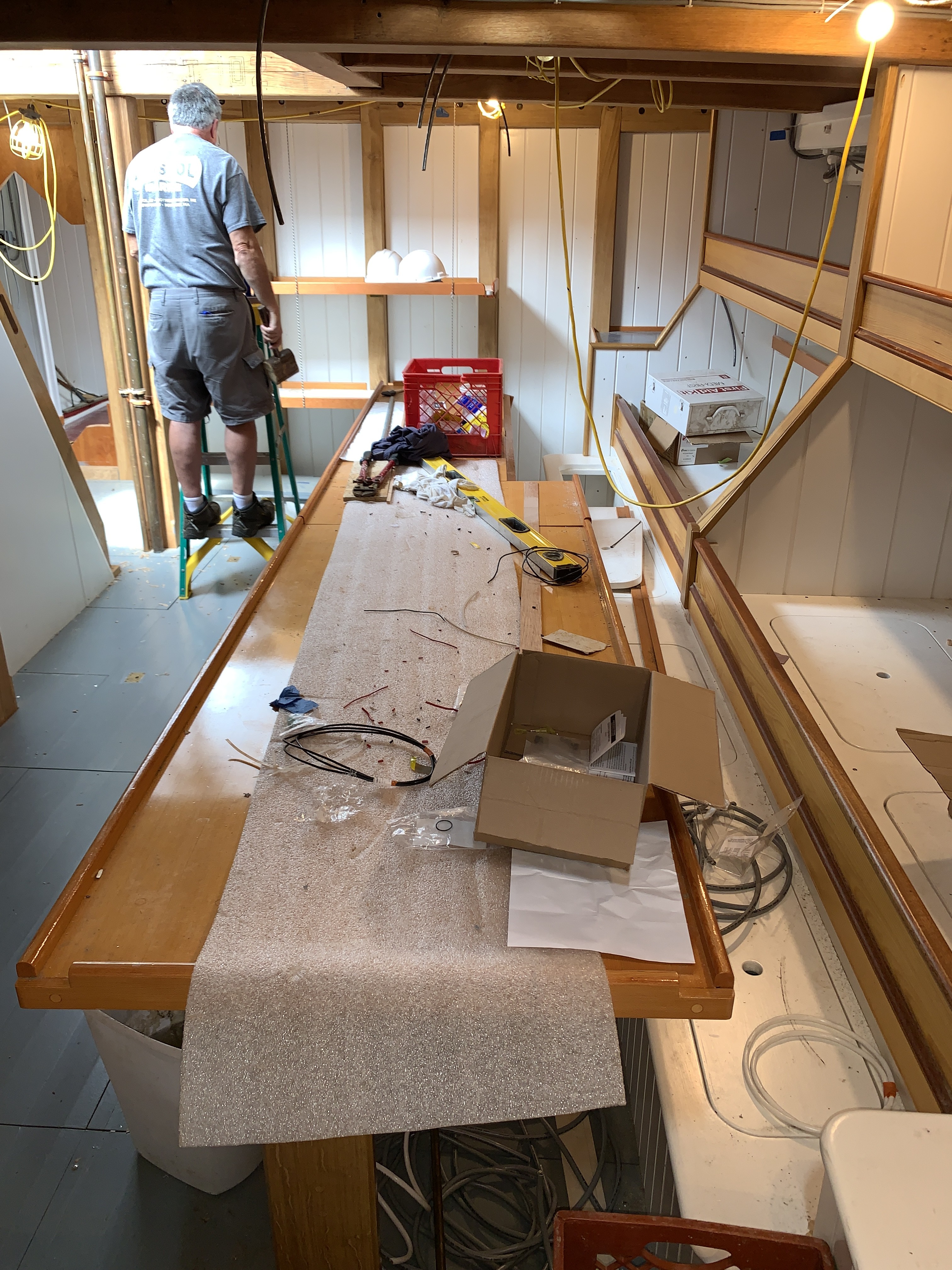Folks familiar with the Ernestina’s layout will notice the biggest change in the configuration of fish hold. Here’s a new table.