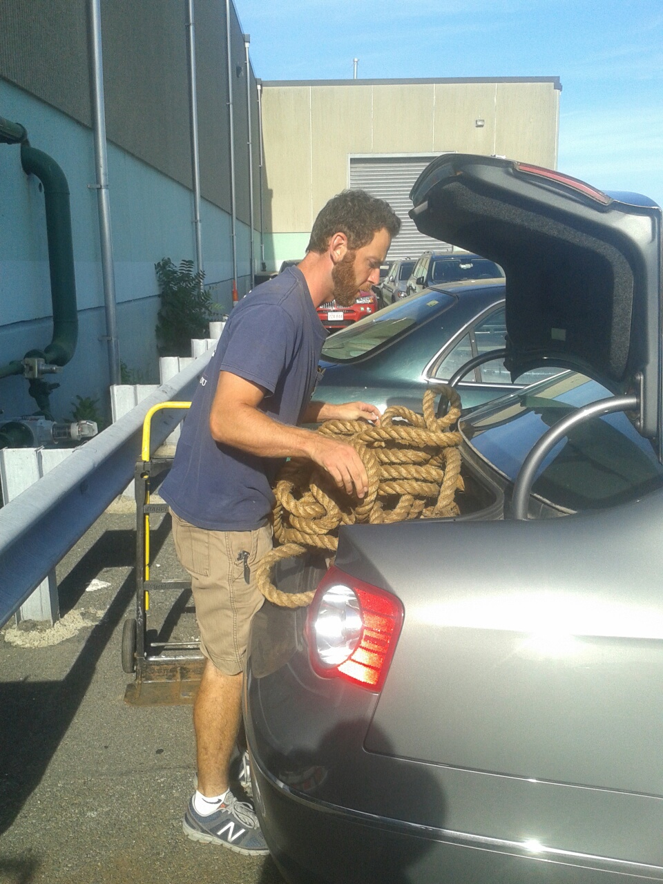 Artist Alex Buchanan loading recycables