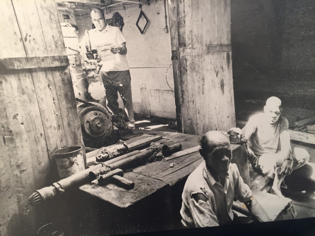 “Here’s the Cummins engineer (I wish I could remember his name) who was assigned to rebuild the diesel engine with help from Bajanga, me, and an assistant in the photo whose name I’ve forgotten. He was a wonderful Scotsman, totally dedicated. Day after day, improvising and toiling. We did the work with the ship floating at dock. It was a very big day when we fired up the engine and took her for a spin. I think it was the first time she’d gone anywhere in a few years. Jaoa Brittes, the port official, came aboard for that. We were frankly worried the hull might come apart. Bajanga took the helm. I’ll never forget the elation of that moment! It seemed miraculous. No, it was miraculous, feeling her shiver back to life and roll again in the sea.”