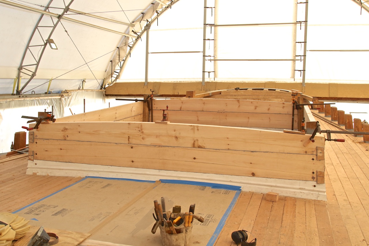Bookmark the permalink.You can just see the top on the transom in this view of the aft cabin trunk, looking aft. This side is curved to accommodate curve of the cabin top, built to it will shed water. photo credit – Robert Mitchell