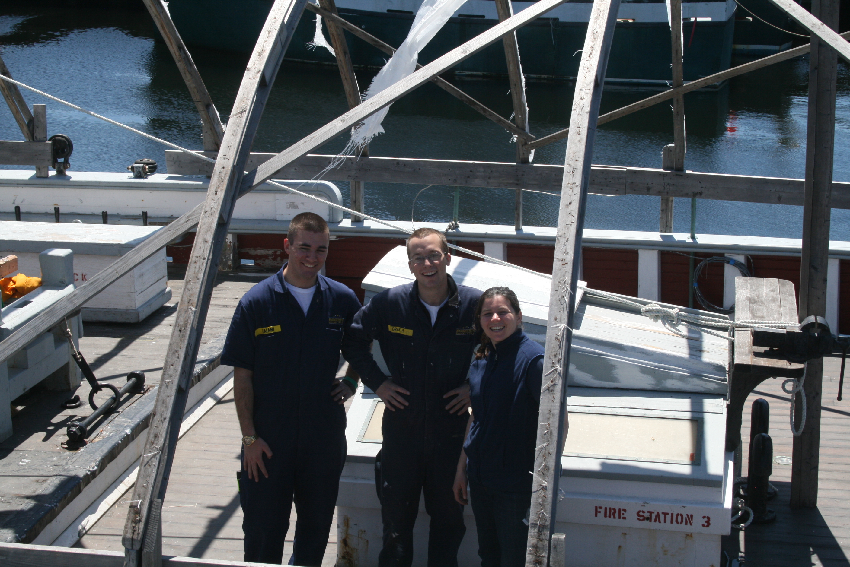 Melissa on right, with two MMA cadets at a Ernestina Work Day in the spring of 2012.