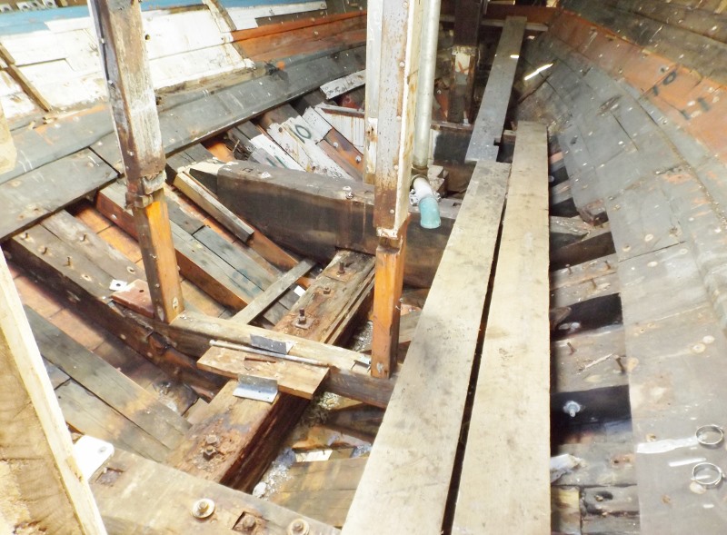 You can just see teh I-beam in this photo, just aft of the stem and at the very top pf the photo.