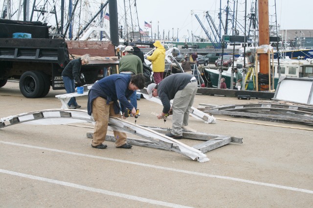 The Galvin family working for the third year in memory of their father Vasco Galvao who was a crew member on Ernestina in the early 1950′s and settled in the US in 1956.