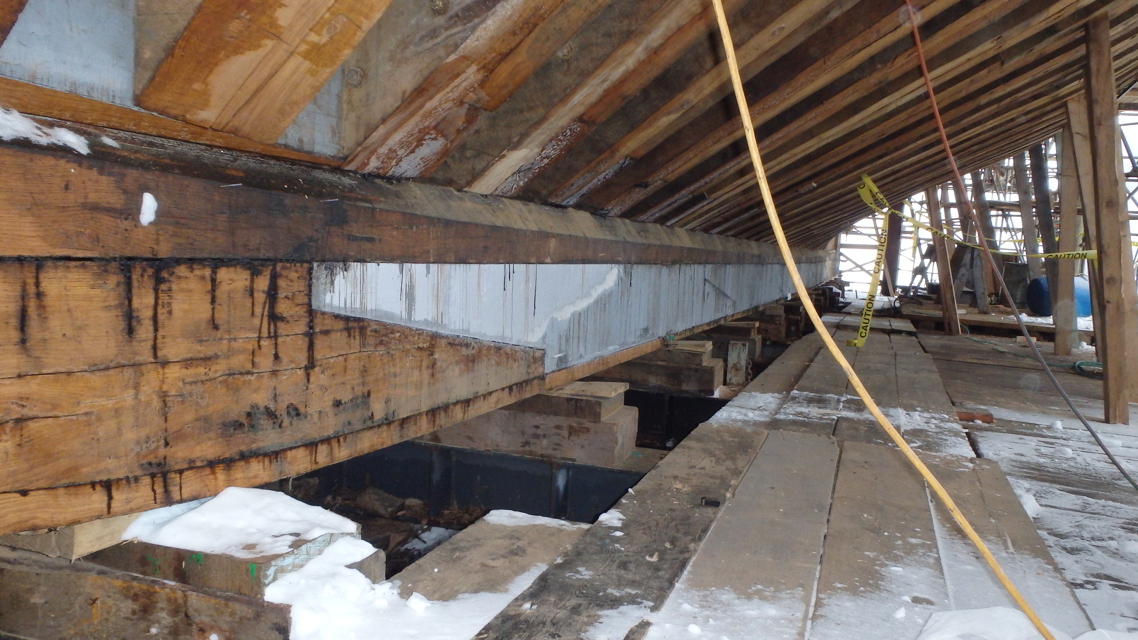 Here you can see the oak keel with the lead ballast keel inserted for part of its length.