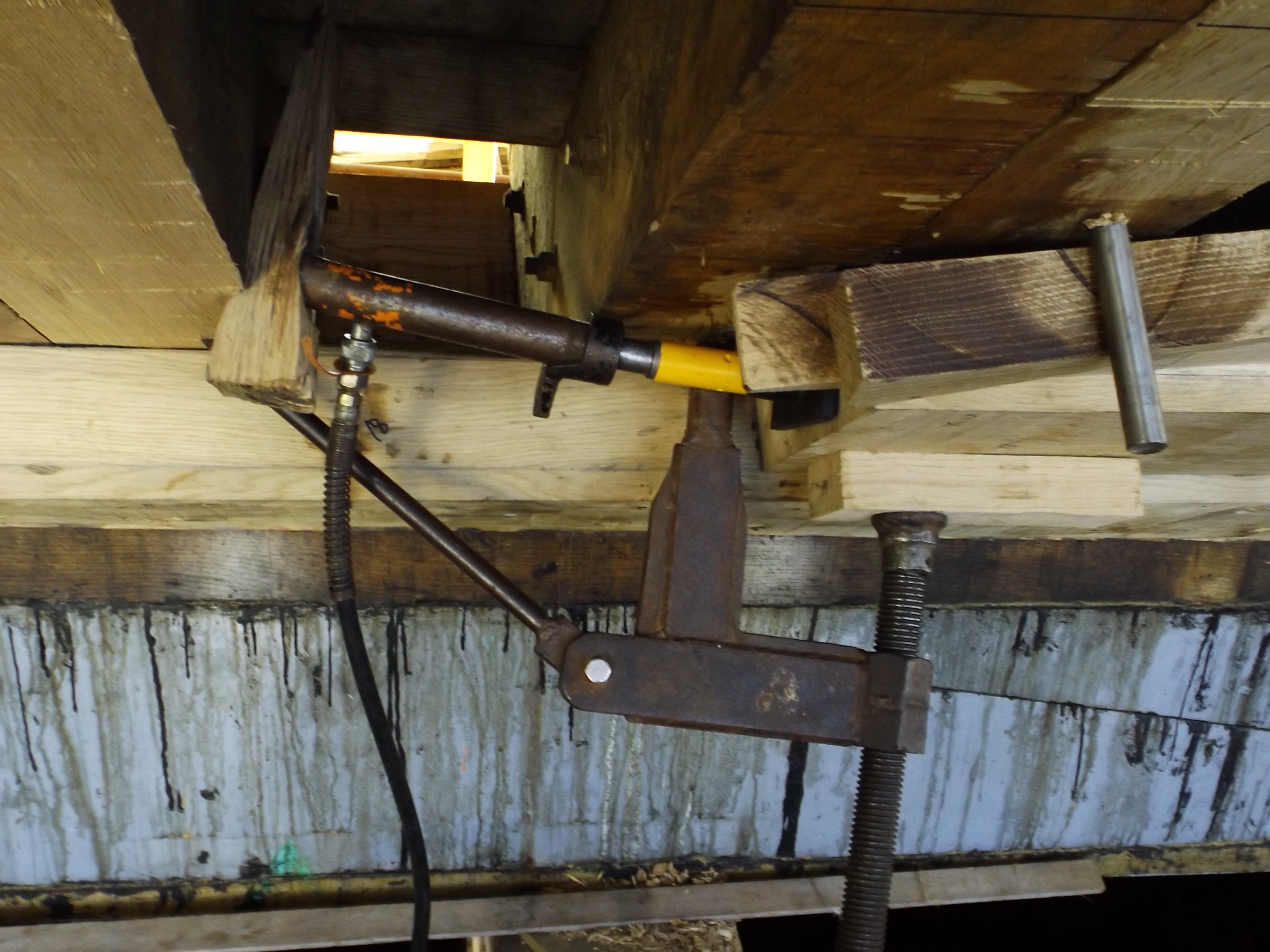 Hydraulics are again called into service along with classic wedges at insure the plank is tight to the stern post.