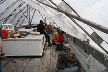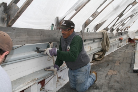 Thanks to all who volunteered to work toward getting Ernestina shipshape and thanks to DCR carpenter Manny Silva and Manager Don Matinzi who worked to make the day possible. The next work day is scheduled for May 12. Check back for details.