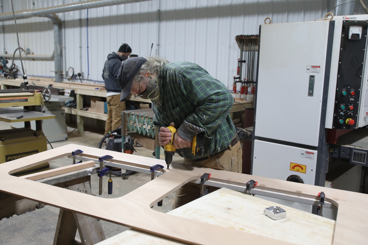 Tom Gerhardt is working hard in the cabinetry shop preparing new cabinet installations for the accommodation spaces. The cabinetry shop has been a very busy space this winter. A separate team of carpenters prepares the various pieces for installation in this shop first before final fitting on the ship.