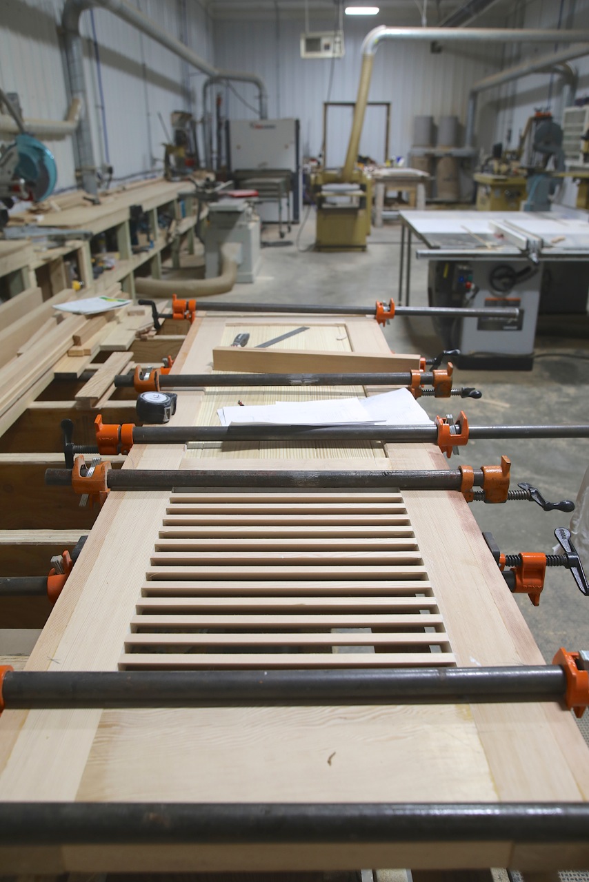 More magic from the carpentry shop. Like the aft cabin, the head spaces in the main cabin and forward cabin will receive the same beautiful doors. One more to build once the glue dries and the clamps are removed.