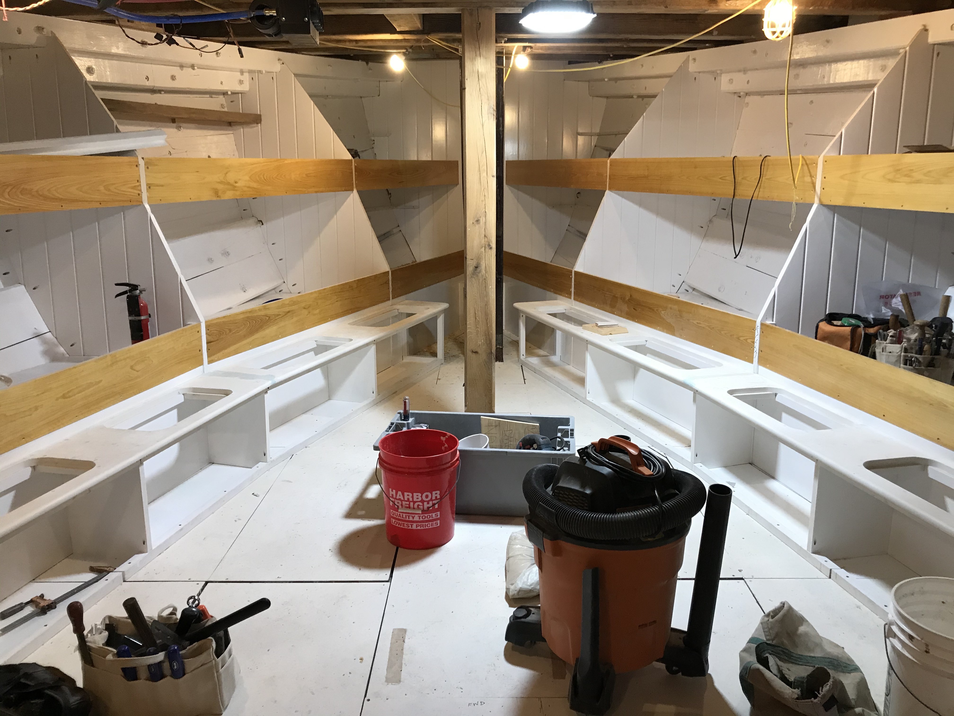 Bookmark the permalink.The Foc’sle (forward cabin) is looking terrific. With the bunks completed, work will pivot into the Main Cabin and galley space. It is exciting to imagine a full compliment of crew filling these bunks in the future