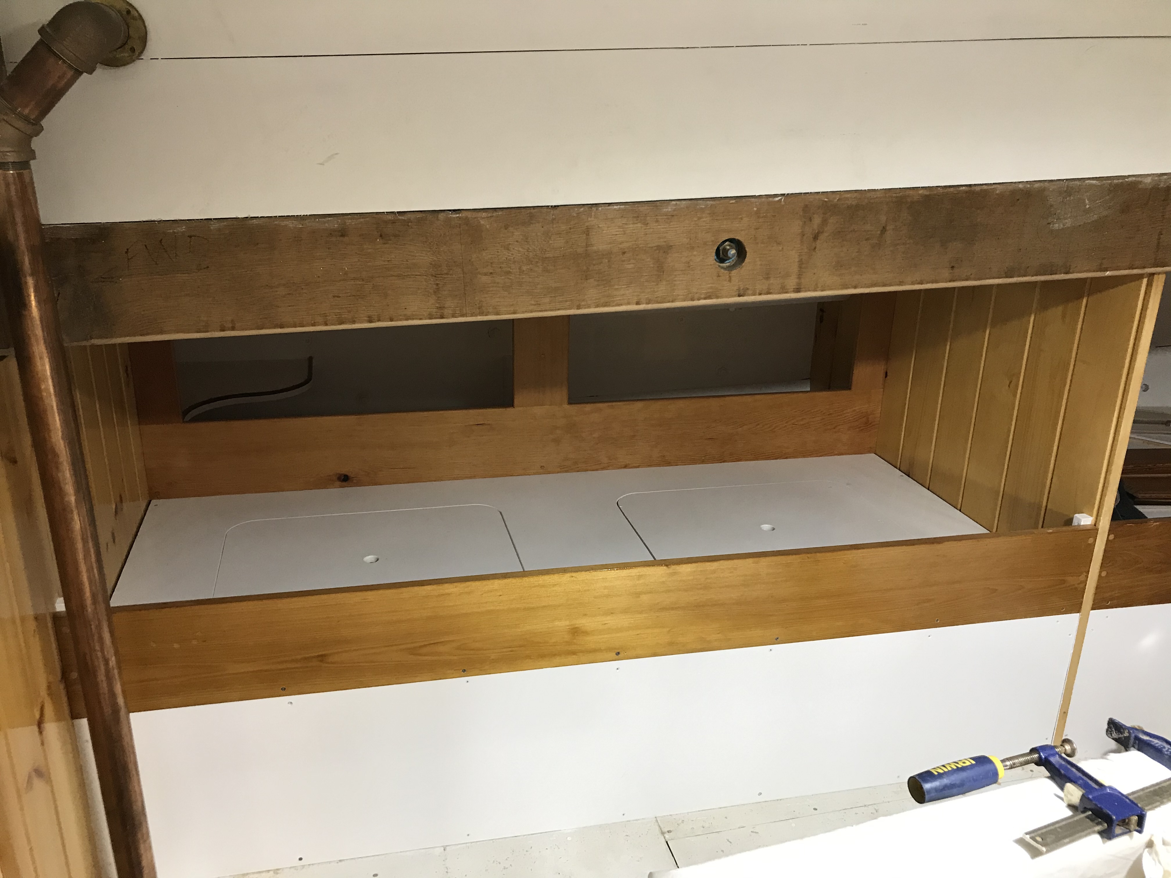 The Aft Cabin will serve as the Officers Quarters, and the construction of this space will be the most detailed in the ship. These beautifully crafted bunks are nearing completion. Notice the mahogany trimmed shelf in the back corner.