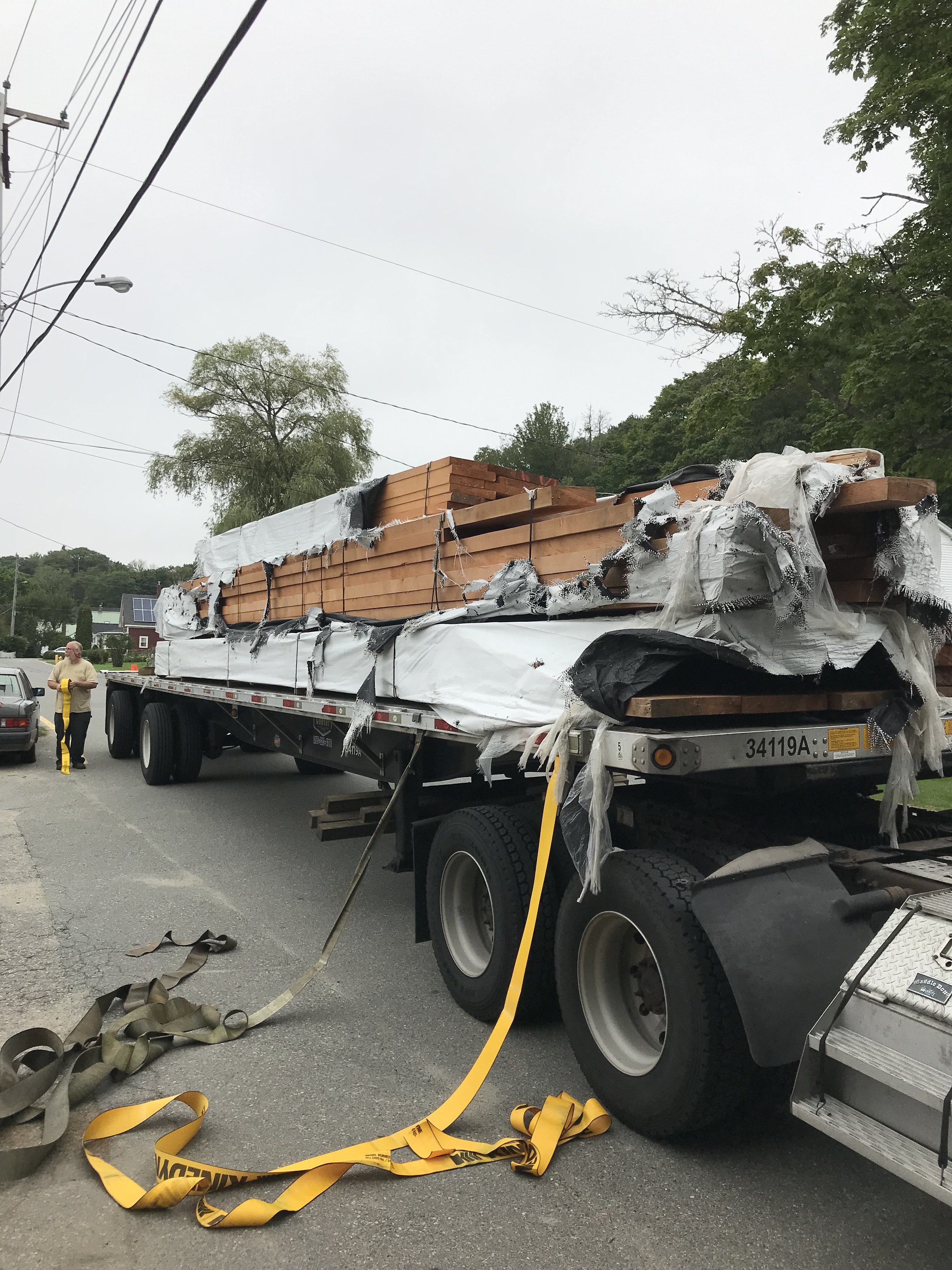 Bookmark the permalink.It was exciting to unload and uncover the 8,000 board feet of high quality Douglas fir lumber when it arrived from the Pacific Northwest. This batch of wood was processed from a single tree.