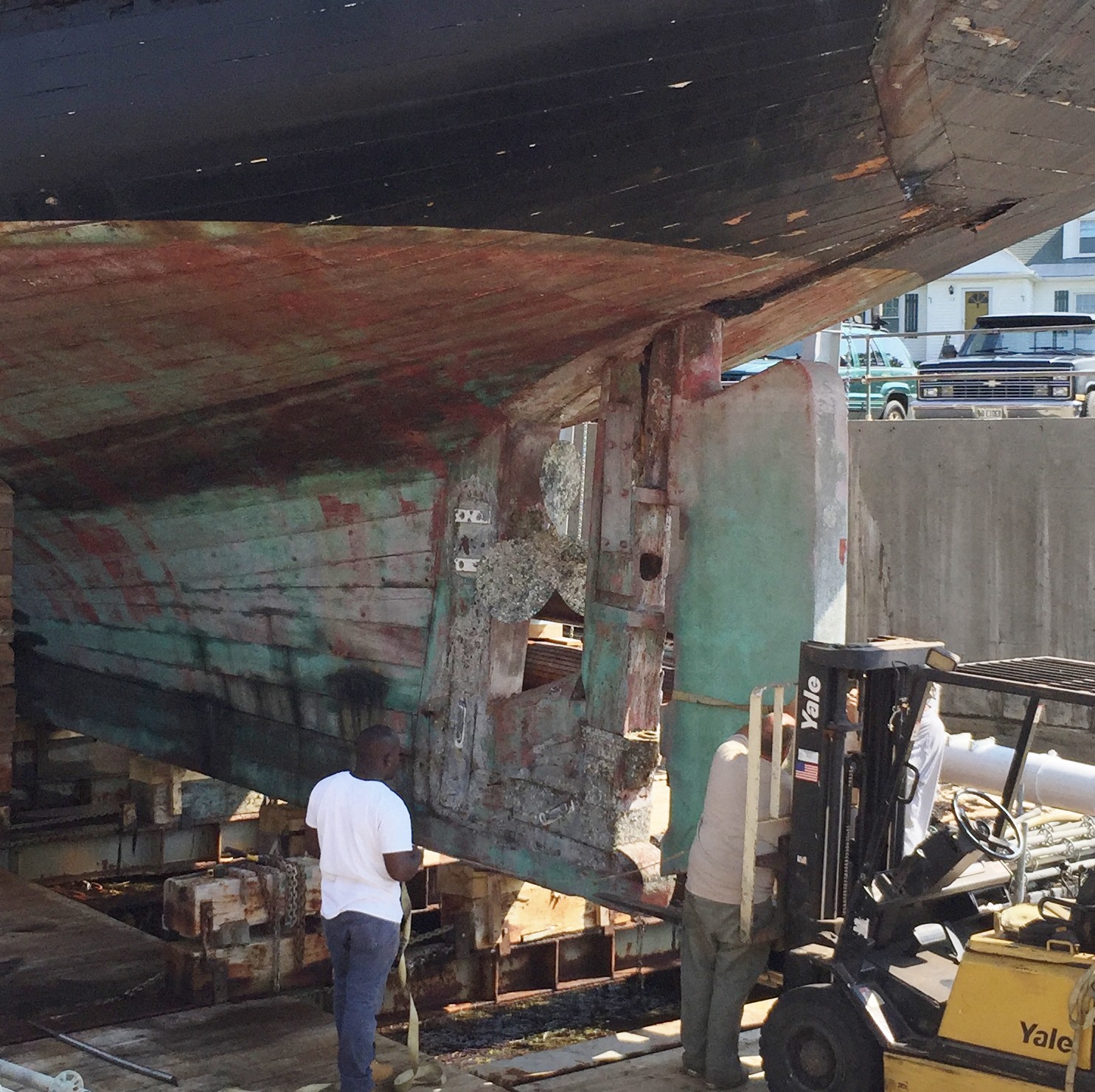 Bookmark the permalink.In 2015 the shipyard crew removed the old rudder. This rudder was fiberglassed in Cape Verde during the reconstruction there.
