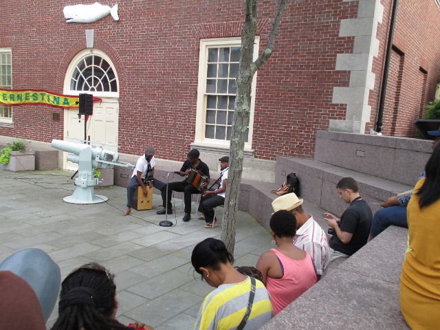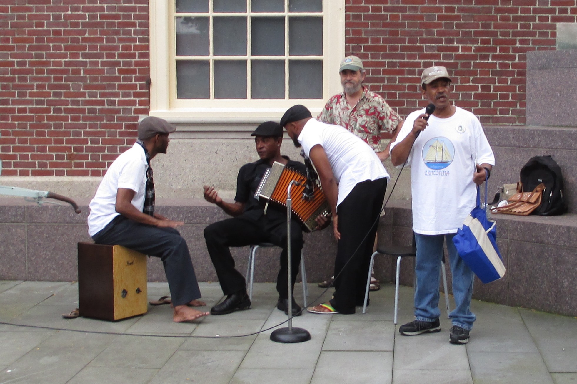 The Accordion and percussion trio TreeOfU showed how musicians informally play together in plazas and street corners in Cape Verde as the crowd gathered at the Whaling Museum plaza.  Many thanks to Tony Cruz for making this evening a success!