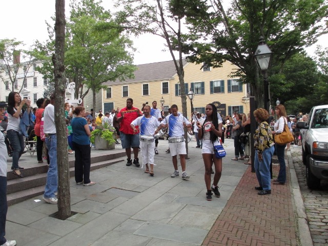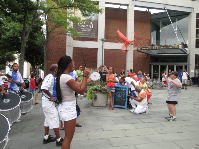 The energy of Sodat, a street drumming group from New Bedford, got everyone’s attention.  More and more people arrived to see what the excitement was.